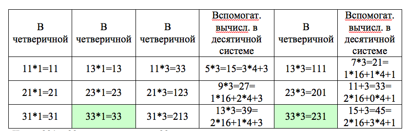 четверичной системе. Из-за числа **1 умножение четных чисел можно не